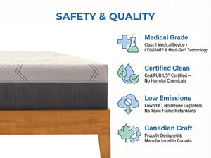 NanoSleep™ mattresses are more than just a place to sleep. They are a Class 1 Medical Device, designed with ethically sourced, non-toxic materials free from ozone depleters, heavy metals, formaldehyde, and harmful flame retardants. Plus, their low VOC emissions ensure a safe and eco-friendly sleep environment. Proudly manufactured in Canada, NanoSleep™ combines innovative design and premium quality to support healthy, restorative sleep. Whether you choose a King, Queen, Double, or Twin size, this mattress adapts to your body over time, delivering unmatched comfort and durability. Investing in a firm mattress for back pain like NanoSleep™ is not just about better sleep—it’s about reclaiming your health and energy, night after night.