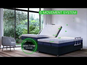 Controlled by a wireless remote, the bed includes programmable memory settings, anti-snore position, one-button return to flat, and ambient under-bed lighting for added nighttime safety. Optional removable safety rails and a Hi/Low elevation system ensure both ease of access and peace of mind.
